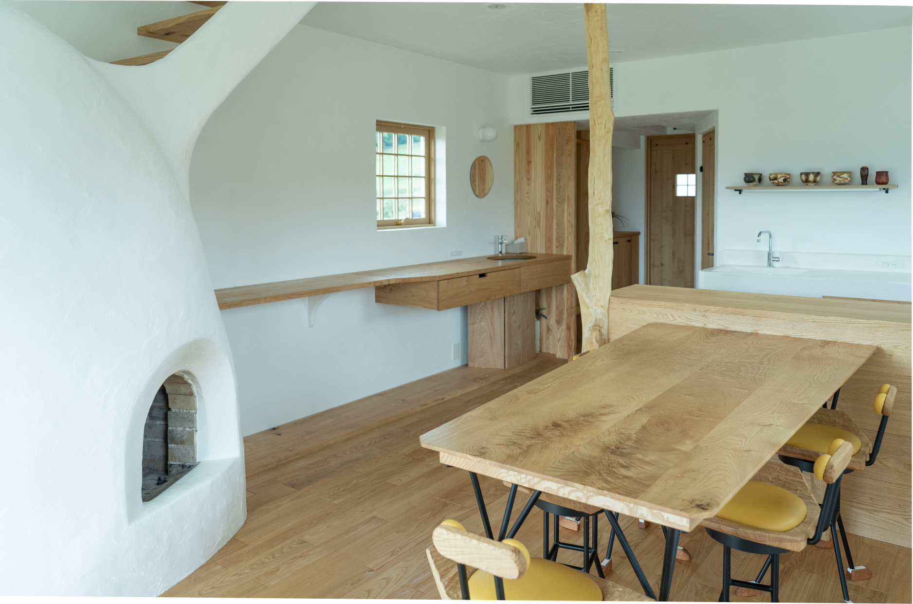 and the floors and furniture are made of chestnut.